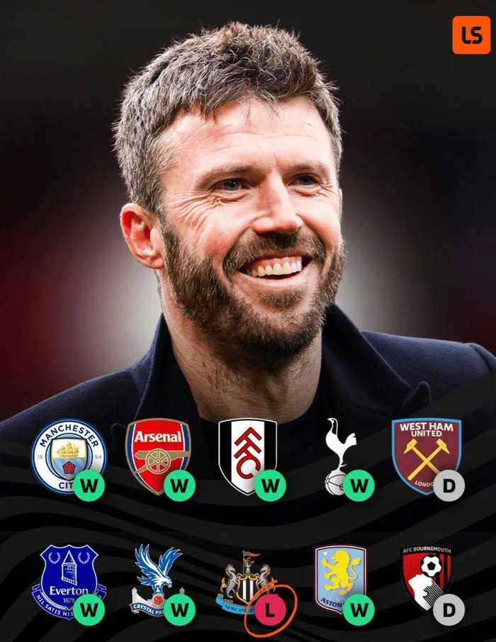 #伯恩茅斯2比2曼联# 此役过后,卡里克上任后前10场比赛只输1场,带队战绩为7胜2平1负。唯一一场失利是3月4日客场1比2不敌纽卡斯尔。